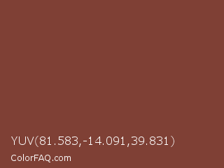 YUV 81.583,-14.091,39.831 Color is a normal red color and the nearest color is Medium Tuscan Red #79443b. Hex code #7f4035 and RGB value is rgb(127,64,53). In RGB color space, this color is composed of 50% red, 25% green, 21% blue, In CMYK color space, this color is composed of 0% cyan, 50% magenta, 58% yellow , 50% black , In HSL color space, this color has a hue angle of 9° , 41% saturation and 35% lightness.