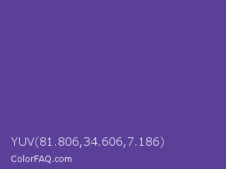 YUV 81.806,34.606,7.186 Color is a normal indigo color and the nearest color is Gigas #523c94. Hex code #5a4098 and RGB value is rgb(90,64,152). In RGB color space, this color is composed of 35% red, 25% green, 60% blue, In CMYK color space, this color is composed of 41% cyan, 58% magenta, 0% yellow , 40% black , In HSL color space, this color has a hue angle of 258° , 41% saturation and 42% lightness.
