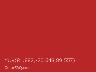 YUV 81.882,-20.648,89.557 Color is a normal red color and the nearest color is Tall Poppy #b32d29. Hex code #b82628 and RGB value is rgb(184,38,40). In RGB color space, this color is composed of 72% red, 15% green, 16% blue, In CMYK color space, this color is composed of 0% cyan, 79% magenta, 78% yellow , 28% black , In HSL color space, this color has a hue angle of 359° , 66% saturation and 44% lightness.