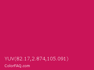YUV 82.17,2.874,105.091 Color is a normal rose color and the nearest color is Rose Red #c21e56. Hex code #ca1458 and RGB value is rgb(202,20,88). In RGB color space, this color is composed of 79% red, 8% green, 35% blue, In CMYK color space, this color is composed of 0% cyan, 90% magenta, 56% yellow , 21% black , In HSL color space, this color has a hue angle of 338° , 82% saturation and 44% lightness.