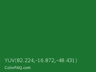 YUV 82.224,-16.872,-48.431 Color is a dark green color and the nearest color is La Salle Green #087830. Hex code #1b7530 and RGB value is rgb(27,117,48). In RGB color space, this color is composed of 11% red, 46% green, 19% blue, In CMYK color space, this color is composed of 77% cyan, 0% magenta, 59% yellow , 54% black , In HSL color space, this color has a hue angle of 134° , 63% saturation and 28% lightness.