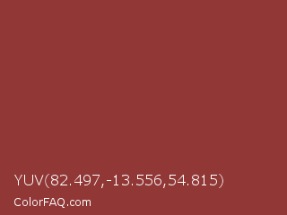 YUV 82.497,-13.556,54.815 Color is a normal red color and the nearest color is Sanguine Brown #8d3d38. Hex code #913837 and RGB value is rgb(145,56,55). In RGB color space, this color is composed of 57% red, 22% green, 22% blue, In CMYK color space, this color is composed of 0% cyan, 61% magenta, 62% yellow , 43% black , In HSL color space, this color has a hue angle of 1° , 45% saturation and 39% lightness.
