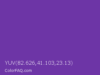 YUV 82.626,41.103,23.13 Color is a normal violet color and the nearest color is Grape #6f2da8. Hex code #6d35a6 and RGB value is rgb(109,53,166). In RGB color space, this color is composed of 43% red, 21% green, 65% blue, In CMYK color space, this color is composed of 34% cyan, 68% magenta, 0% yellow , 35% black , In HSL color space, this color has a hue angle of 270° , 52% saturation and 43% lightness.