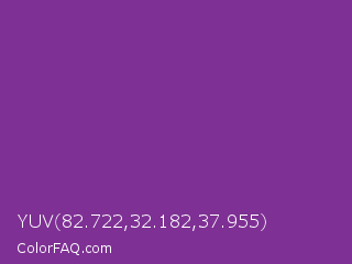 YUV 82.722,32.182,37.955 Color is a normal purple color and the nearest color is Vivid Violet #803790. Hex code #7e3094 and RGB value is rgb(126,48,148). In RGB color space, this color is composed of 49% red, 19% green, 58% blue, In CMYK color space, this color is composed of 15% cyan, 68% magenta, 0% yellow , 42% black , In HSL color space, this color has a hue angle of 287° , 51% saturation and 38% lightness.