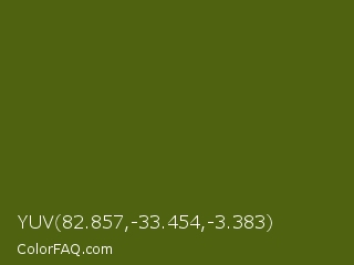 YUV 82.857,-33.454,-3.383 Color is a very dark lime color and the nearest color is Saratoga #555b10. Hex code #4f620f and RGB value is rgb(79,98,15). In RGB color space, this color is composed of 31% red, 38% green, 6% blue, In CMYK color space, this color is composed of 19% cyan, 0% magenta, 85% yellow , 62% black , In HSL color space, this color has a hue angle of 74° , 73% saturation and 22% lightness.