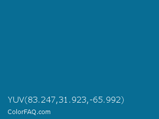 YUV 83.247,31.923,-65.992 Color is a normal blue color and the nearest color is Sea Blue #006994. Hex code #086d94 and RGB value is rgb(8,109,148). In RGB color space, this color is composed of 3% red, 43% green, 58% blue, In CMYK color space, this color is composed of 95% cyan, 26% magenta, 0% yellow , 42% black , In HSL color space, this color has a hue angle of 197° , 90% saturation and 31% lightness.