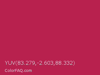 YUV 83.279,-2.603,88.332 Color is a normal rose color and the nearest color is Maroon Flush #c32148. Hex code #b8214e and RGB value is rgb(184,33,78). In RGB color space, this color is composed of 72% red, 13% green, 31% blue, In CMYK color space, this color is composed of 0% cyan, 82% magenta, 58% yellow , 28% black , In HSL color space, this color has a hue angle of 342° , 70% saturation and 43% lightness.