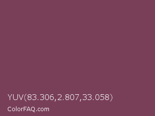 YUV 83.306,2.807,33.058 Color is a normal rose color and the nearest color is Cosmic #76395d. Hex code #793f59 and RGB value is rgb(121,63,89). In RGB color space, this color is composed of 47% red, 25% green, 35% blue, In CMYK color space, this color is composed of 0% cyan, 48% magenta, 26% yellow , 53% black , In HSL color space, this color has a hue angle of 333° , 32% saturation and 36% lightness.