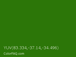 YUV 83.334,-37.14,-34.496 Color is a dark green color and the nearest color is Napier Green #2a8000. Hex code #2c7608 and RGB value is rgb(44,118,8). In RGB color space, this color is composed of 17% red, 46% green, 3% blue, In CMYK color space, this color is composed of 63% cyan, 0% magenta, 93% yellow , 54% black , In HSL color space, this color has a hue angle of 100° , 87% saturation and 25% lightness.