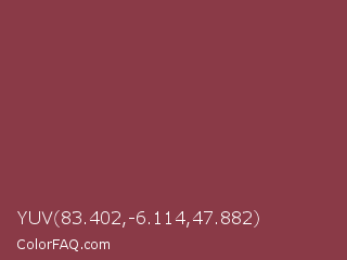 YUV 83.402,-6.114,47.882 Color is a normal red color and the nearest color is Solid Pink #893843. Hex code #8a3a47 and RGB value is rgb(138,58,71). In RGB color space, this color is composed of 54% red, 23% green, 28% blue, In CMYK color space, this color is composed of 0% cyan, 58% magenta, 49% yellow , 46% black , In HSL color space, this color has a hue angle of 350° , 41% saturation and 38% lightness.