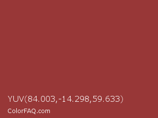 YUV 84.003,-14.298,59.633 Color is a normal red color and the nearest color is Stiletto #9c3336. Hex code #983737 and RGB value is rgb(152,55,55). In RGB color space, this color is composed of 60% red, 22% green, 22% blue, In CMYK color space, this color is composed of 0% cyan, 64% magenta, 64% yellow , 40% black , In HSL color space, this color has a hue angle of 0° , 47% saturation and 41% lightness.