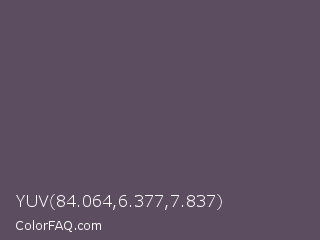 YUV 84.064,6.377,7.837 Color is a normal purple color and the nearest color is Scarpa Flow #585562. Hex code #5d4d61 and RGB value is rgb(93,77,97). In RGB color space, this color is composed of 36% red, 30% green, 38% blue, In CMYK color space, this color is composed of 4% cyan, 21% magenta, 0% yellow , 62% black , In HSL color space, this color has a hue angle of 288° , 11% saturation and 34% lightness.
