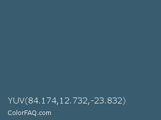 YUV 84.174,12.732,-23.832 Color is a normal blue color and the nearest color is William #3a686c. Hex code #395d6e and RGB value is rgb(57,93,110). In RGB color space, this color is composed of 22% red, 36% green, 43% blue, In CMYK color space, this color is composed of 48% cyan, 15% magenta, 0% yellow , 57% black , In HSL color space, this color has a hue angle of 199° , 32% saturation and 33% lightness.