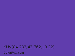 YUV 84.233,43.762,10.32 Color is a normal indigo color and the nearest color is Plump Purple #5946b2. Hex code #603dad and RGB value is rgb(96,61,173). In RGB color space, this color is composed of 38% red, 24% green, 68% blue, In CMYK color space, this color is composed of 45% cyan, 65% magenta, 0% yellow , 32% black , In HSL color space, this color has a hue angle of 259° , 48% saturation and 46% lightness.