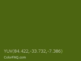 YUV 84.422,-33.732,-7.386 Color is a dark lime color and the nearest color is Green Leaf #436a0d. Hex code #4c6610 and RGB value is rgb(76,102,16). In RGB color space, this color is composed of 30% red, 40% green, 6% blue, In CMYK color space, this color is composed of 25% cyan, 0% magenta, 84% yellow , 60% black , In HSL color space, this color has a hue angle of 78° , 73% saturation and 23% lightness.