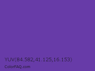 YUV 84.582,41.125,16.153 Color is a normal violet color and the nearest color is Royal Purple #6b3fa0. Hex code #673ba8 and RGB value is rgb(103,59,168). In RGB color space, this color is composed of 40% red, 23% green, 66% blue, In CMYK color space, this color is composed of 39% cyan, 65% magenta, 0% yellow , 34% black , In HSL color space, this color has a hue angle of 264° , 48% saturation and 45% lightness.
