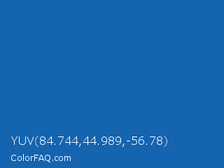 YUV 84.744,44.989,-56.78 Color is a normal blue color and the nearest color is Green Blue #1164b4. Hex code #1464b0 and RGB value is rgb(20,100,176). In RGB color space, this color is composed of 8% red, 39% green, 69% blue, In CMYK color space, this color is composed of 89% cyan, 43% magenta, 0% yellow , 31% black , In HSL color space, this color has a hue angle of 209° , 80% saturation and 38% lightness.