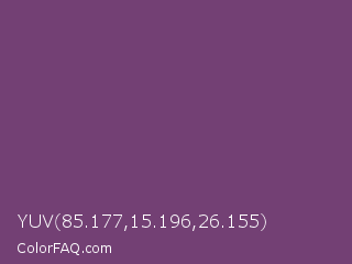 YUV 85.177,15.196,26.155 Color is a normal magenta color and the nearest color is Maximum Purple #733380. Hex code #734074 and RGB value is rgb(115,64,116). In RGB color space, this color is composed of 45% red, 25% green, 45% blue, In CMYK color space, this color is composed of 1% cyan, 45% magenta, 0% yellow , 55% black , In HSL color space, this color has a hue angle of 299° , 29% saturation and 35% lightness.