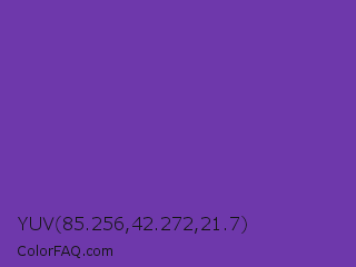 YUV 85.256,42.272,21.7 Color is a normal violet color and the nearest color is Grape #6f2da8. Hex code #6e38ab and RGB value is rgb(110,56,171). In RGB color space, this color is composed of 43% red, 22% green, 67% blue, In CMYK color space, this color is composed of 36% cyan, 67% magenta, 0% yellow , 33% black , In HSL color space, this color has a hue angle of 268° , 51% saturation and 45% lightness.