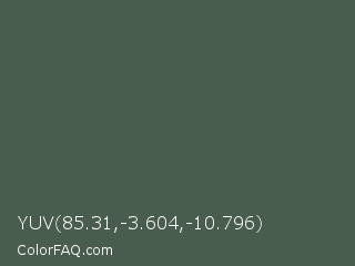 YUV 85.31,-3.604,-10.796 Color is a normal green color and the nearest color is Nandor #4b5d52. Hex code #495d4e and RGB value is rgb(73,93,78). In RGB color space, this color is composed of 29% red, 36% green, 31% blue, In CMYK color space, this color is composed of 22% cyan, 0% magenta, 16% yellow , 64% black , In HSL color space, this color has a hue angle of 135° , 12% saturation and 33% lightness.