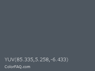 YUV 85.335,5.258,-6.433 Color is a normal blue color and the nearest color is Scarpa Flow #585562. Hex code #4e5760 and RGB value is rgb(78,87,96). In RGB color space, this color is composed of 31% red, 34% green, 38% blue, In CMYK color space, this color is composed of 19% cyan, 9% magenta, 0% yellow , 62% black , In HSL color space, this color has a hue angle of 210° , 10% saturation and 34% lightness.