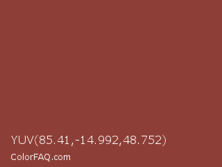 YUV 85.41,-14.992,48.752 Color is a normal red color and the nearest color is Sanguine Brown #8d3d38. Hex code #8d3f37 and RGB value is rgb(141,63,55). In RGB color space, this color is composed of 55% red, 25% green, 22% blue, In CMYK color space, this color is composed of 0% cyan, 55% magenta, 61% yellow , 45% black , In HSL color space, this color has a hue angle of 6° , 44% saturation and 38% lightness.