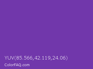 YUV 85.566,42.119,24.06 Color is a normal violet color and the nearest color is Grape #6f2da8. Hex code #7137ab and RGB value is rgb(113,55,171). In RGB color space, this color is composed of 44% red, 22% green, 67% blue, In CMYK color space, this color is composed of 34% cyan, 68% magenta, 0% yellow , 33% black , In HSL color space, this color has a hue angle of 270° , 51% saturation and 44% lightness.
