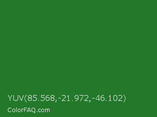 YUV 85.568,-21.972,-46.102 Color is a dark green color and the nearest color is Forest Green #228b22. Hex code #217929 and RGB value is rgb(33,121,41). In RGB color space, this color is composed of 13% red, 47% green, 16% blue, In CMYK color space, this color is composed of 73% cyan, 0% magenta, 66% yellow , 53% black , In HSL color space, this color has a hue angle of 125° , 57% saturation and 30% lightness.