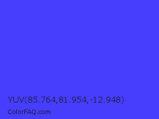 YUV 85.764,81.954,-12.948 Color is a light indigo color and the nearest color is Han Purple #5218fa. Hex code #473dfc and RGB value is rgb(71,61,252). In RGB color space, this color is composed of 28% red, 24% green, 99% blue, In CMYK color space, this color is composed of 72% cyan, 76% magenta, 0% yellow , 1% black , In HSL color space, this color has a hue angle of 243° , 97% saturation and 61% lightness.