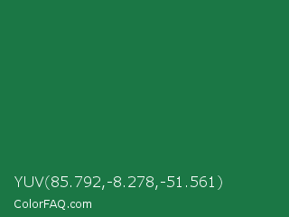 YUV 85.792,-8.278,-51.561 Color is a dark green color and the nearest color is Dark Spring Green #177245. Hex code #1b7745 and RGB value is rgb(27,119,69). In RGB color space, this color is composed of 11% red, 47% green, 27% blue, In CMYK color space, this color is composed of 77% cyan, 0% magenta, 42% yellow , 53% black , In HSL color space, this color has a hue angle of 147° , 63% saturation and 29% lightness.