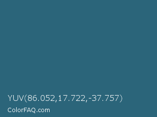 YUV 86.052,17.722,-37.757 Color is a normal blue color and the nearest color is Ming #36747d. Hex code #2b657a and RGB value is rgb(43,101,122). In RGB color space, this color is composed of 17% red, 40% green, 48% blue, In CMYK color space, this color is composed of 65% cyan, 17% magenta, 0% yellow , 52% black , In HSL color space, this color has a hue angle of 196° , 48% saturation and 32% lightness.