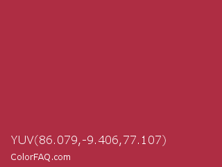YUV 86.079,-9.406,77.107 Color is a normal red color and the nearest color is Amaranth Purple #ab274f. Hex code #ae2d43 and RGB value is rgb(174,45,67). In RGB color space, this color is composed of 68% red, 18% green, 26% blue, In CMYK color space, this color is composed of 0% cyan, 74% magenta, 61% yellow , 32% black , In HSL color space, this color has a hue angle of 350° , 59% saturation and 43% lightness.