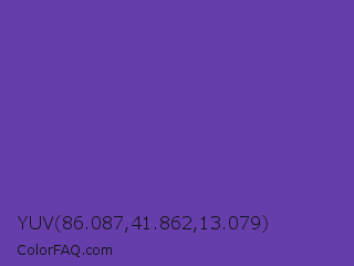 YUV 86.087,41.862,13.079 Color is a normal violet color and the nearest color is Royal Purple #6b3fa0. Hex code #653eab and RGB value is rgb(101,62,171). In RGB color space, this color is composed of 40% red, 24% green, 67% blue, In CMYK color space, this color is composed of 41% cyan, 64% magenta, 0% yellow , 33% black , In HSL color space, this color has a hue angle of 261° , 47% saturation and 46% lightness.