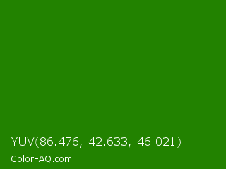YUV 86.476,-42.633,-46.021 Color is a dark green color and the nearest color is Napier Green #2a8000. Hex code #228200 and RGB value is rgb(34,130,-0). In RGB color space, this color is composed of 13% red, 51% green, 0% blue, In CMYK color space, this color is composed of 74% cyan, 0% magenta, 100% yellow , 49% black , In HSL color space, this color has a hue angle of 104° , 100% saturation and 25% lightness.