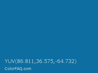 YUV 86.811,36.575,-64.732 Color is a normal blue color and the nearest color is Sapphire Blue #0067a5. Hex code #0d6ea1 and RGB value is rgb(13,110,161). In RGB color space, this color is composed of 5% red, 43% green, 63% blue, In CMYK color space, this color is composed of 92% cyan, 32% magenta, 0% yellow , 37% black , In HSL color space, this color has a hue angle of 201° , 85% saturation and 34% lightness.