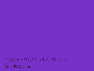 YUV 86.97,56.217,28.967 Color is a normal violet color and the nearest color is Purple Heart Crayola #652dc1. Hex code #7830c9 and RGB value is rgb(120,48,201). In RGB color space, this color is composed of 47% red, 19% green, 79% blue, In CMYK color space, this color is composed of 40% cyan, 76% magenta, 0% yellow , 21% black , In HSL color space, this color has a hue angle of 268° , 61% saturation and 49% lightness.