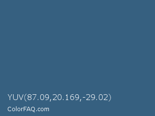 YUV 87.09,20.169,-29.02 Color is a normal blue color and the nearest color is Ming #36747d. Hex code #366080 and RGB value is rgb(54,96,128). In RGB color space, this color is composed of 21% red, 38% green, 50% blue, In CMYK color space, this color is composed of 58% cyan, 25% magenta, 0% yellow , 50% black , In HSL color space, this color has a hue angle of 206° , 41% saturation and 36% lightness.