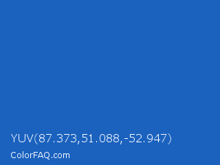 YUV 87.373,51.088,-52.947 Color is a normal blue color and the nearest color is Denim #1560bd. Hex code #1b62bf and RGB value is rgb(27,98,191). In RGB color space, this color is composed of 11% red, 38% green, 75% blue, In CMYK color space, this color is composed of 86% cyan, 49% magenta, 0% yellow , 25% black , In HSL color space, this color has a hue angle of 214° , 75% saturation and 43% lightness.