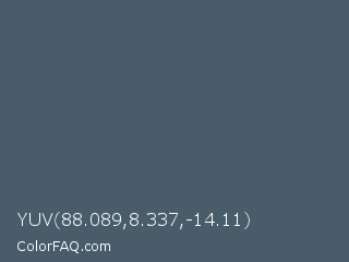 YUV 88.089,8.337,-14.11 Color is a normal blue color and the nearest color is Deep Space Sparkle #4a646c. Hex code #485d69 and RGB value is rgb(72,93,105). In RGB color space, this color is composed of 28% red, 36% green, 41% blue, In CMYK color space, this color is composed of 31% cyan, 11% magenta, 0% yellow , 59% black , In HSL color space, this color has a hue angle of 202° , 19% saturation and 35% lightness.