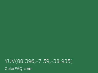 YUV 88.396,-7.59,-38.935 Color is a normal green color and the nearest color is Killarney #3a6a47. Hex code #2c7249 and RGB value is rgb(44,114,73). In RGB color space, this color is composed of 17% red, 45% green, 29% blue, In CMYK color space, this color is composed of 61% cyan, 0% magenta, 36% yellow , 55% black , In HSL color space, this color has a hue angle of 145° , 44% saturation and 31% lightness.