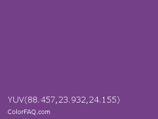YUV 88.457,23.932,24.155 Color is a normal purple color and the nearest color is Affair #714693. Hex code #744189 and RGB value is rgb(116,65,137). In RGB color space, this color is composed of 45% red, 25% green, 54% blue, In CMYK color space, this color is composed of 15% cyan, 53% magenta, 0% yellow , 46% black , In HSL color space, this color has a hue angle of 283° , 36% saturation and 40% lightness.