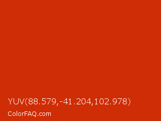 YUV 88.579,-41.204,102.978 Color is a normal red color and the nearest color is Sinopia #cb410b. Hex code #ce2d05 and RGB value is rgb(206,45,5). In RGB color space, this color is composed of 81% red, 18% green, 2% blue, In CMYK color space, this color is composed of 0% cyan, 78% magenta, 98% yellow , 19% black , In HSL color space, this color has a hue angle of 12° , 95% saturation and 41% lightness.