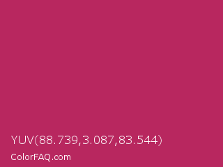 YUV 88.739,3.087,83.544 Color is a normal rose color and the nearest color is Rich Maroon #b03060. Hex code #b8275f and RGB value is rgb(184,39,95). In RGB color space, this color is composed of 72% red, 15% green, 37% blue, In CMYK color space, this color is composed of 0% cyan, 79% magenta, 48% yellow , 28% black , In HSL color space, this color has a hue angle of 337° , 65% saturation and 44% lightness.