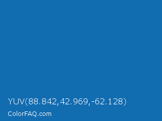 YUV 88.842,42.969,-62.128 Color is a normal blue color and the nearest color is Green Blue #1164b4. Hex code #126cb0 and RGB value is rgb(18,108,176). In RGB color space, this color is composed of 7% red, 42% green, 69% blue, In CMYK color space, this color is composed of 90% cyan, 39% magenta, 0% yellow , 31% black , In HSL color space, this color has a hue angle of 206° , 81% saturation and 38% lightness.