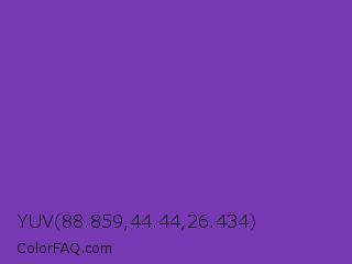 YUV 88.859,44.44,26.434 Color is a normal purple color and the nearest color is Grape #6f2da8. Hex code #7738b3 and RGB value is rgb(119,56,179). In RGB color space, this color is composed of 47% red, 22% green, 70% blue, In CMYK color space, this color is composed of 34% cyan, 69% magenta, 0% yellow , 30% black , In HSL color space, this color has a hue angle of 271° , 52% saturation and 46% lightness.