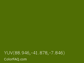 YUV 88.946,-41.878,-7.846 Color is a very dark lime color and the nearest color is Green Leaf #436a0d. Hex code #506e04 and RGB value is rgb(80,110,4). In RGB color space, this color is composed of 31% red, 43% green, 2% blue, In CMYK color space, this color is composed of 27% cyan, 0% magenta, 96% yellow , 57% black , In HSL color space, this color has a hue angle of 77° , 93% saturation and 22% lightness.