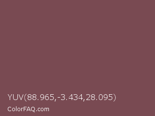 YUV 88.965,-3.434,28.095 Color is a normal red color and the nearest color is Ferra #704f50. Hex code #794a52 and RGB value is rgb(121,74,82). In RGB color space, this color is composed of 47% red, 29% green, 32% blue, In CMYK color space, this color is composed of 0% cyan, 39% magenta, 32% yellow , 53% black , In HSL color space, this color has a hue angle of 350° , 24% saturation and 38% lightness.
