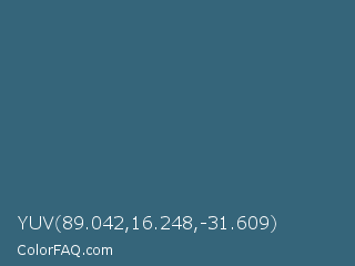 YUV 89.042,16.248,-31.609 Color is a normal blue color and the nearest color is William #3a686c. Hex code #35657a and RGB value is rgb(53,101,122). In RGB color space, this color is composed of 21% red, 40% green, 48% blue, In CMYK color space, this color is composed of 57% cyan, 17% magenta, 0% yellow , 52% black , In HSL color space, this color has a hue angle of 198° , 39% saturation and 34% lightness.