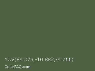 YUV 89.073,-10.882,-9.711 Color is a normal green color and the nearest color is Axolotl #4e6649. Hex code #4e6343 and RGB value is rgb(78,99,67). In RGB color space, this color is composed of 31% red, 39% green, 26% blue, In CMYK color space, this color is composed of 21% cyan, 0% magenta, 32% yellow , 61% black , In HSL color space, this color has a hue angle of 99° , 19% saturation and 33% lightness.