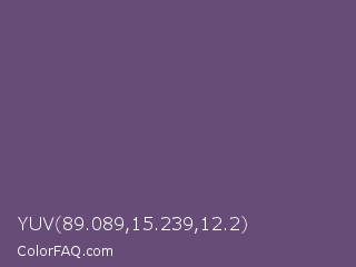 YUV 89.089,15.239,12.2 Color is a normal purple color and the nearest color is Smoky #605b73. Hex code #674c78 and RGB value is rgb(103,76,120). In RGB color space, this color is composed of 40% red, 30% green, 47% blue, In CMYK color space, this color is composed of 14% cyan, 37% magenta, 0% yellow , 53% black , In HSL color space, this color has a hue angle of 277° , 22% saturation and 38% lightness.